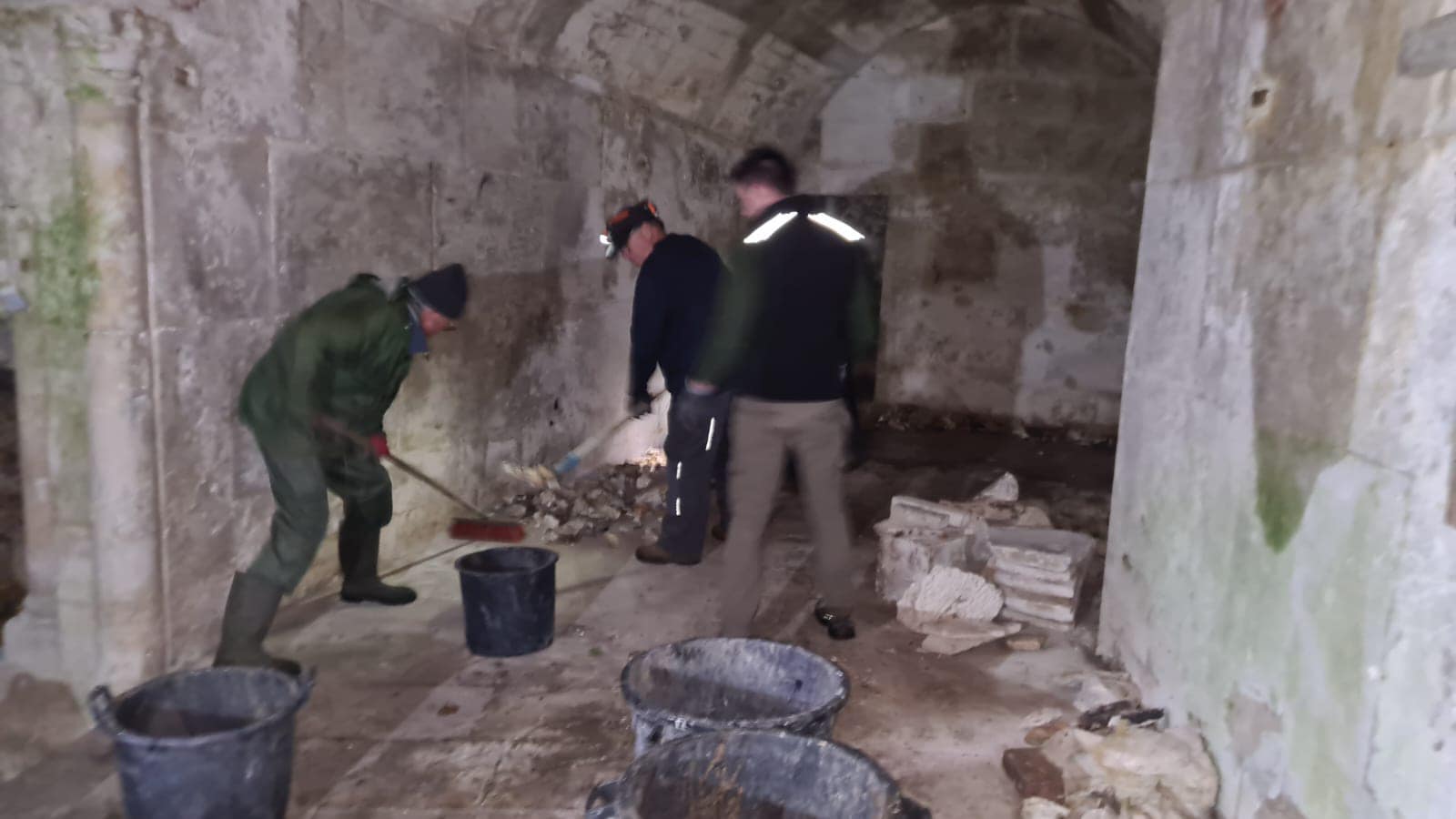 - Crypte entièrement nettoyées et débris de sculptures rassemblés et conservés sous La Croix. ✝️